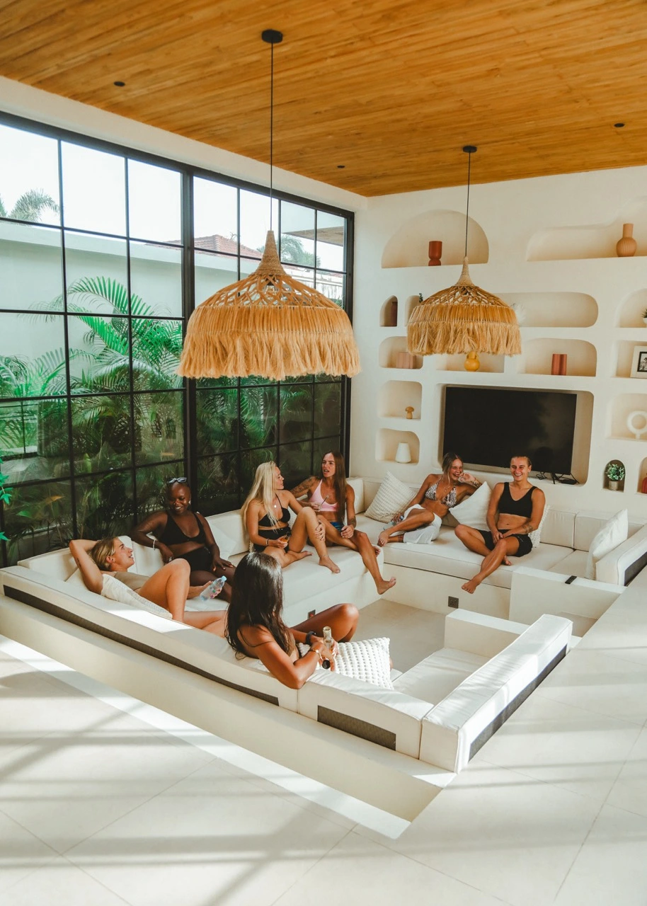 - A private six bedroom luxury villa with a pool, terrace, sauna, ice bath, barbecue area, and beautifully designed shared spaces, with each guest receiving her own ensuite bedroom.